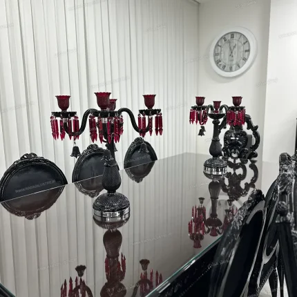 شمعدان رو میزی مشکی قرمز به صورت جفت