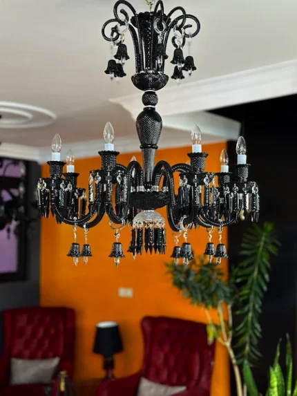 لوستر مدل باکارا 12 شاخه مشکی قرمز-یک