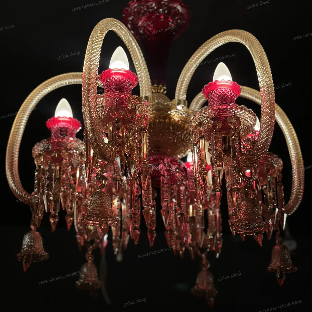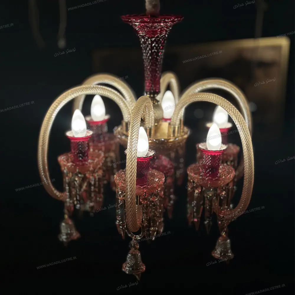 این لوستر از 6 شاخه‌ی متقارن برخوردار است که به‌صورت یکنواخت نور را در فضا پخش می‌کنند و با کمک لامپ‌های LED یا کم‌مصرف، نوری ملایم و یکنواخت ارائه می‌دهد. شیشه‌های شفاف به‌کاررفته در طراحی شاخه‌ها باعث درخشندگی بیشتر و ظاهری درخشان و لوکس می‌شود.