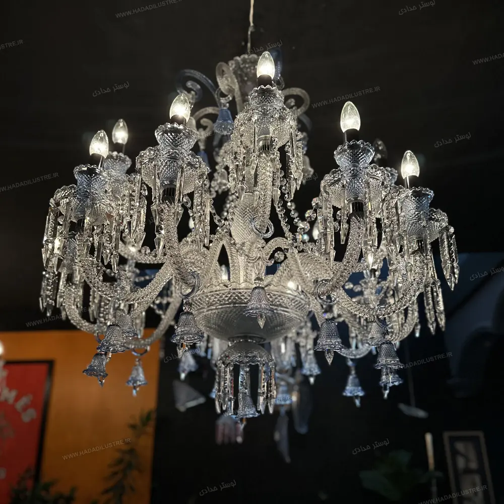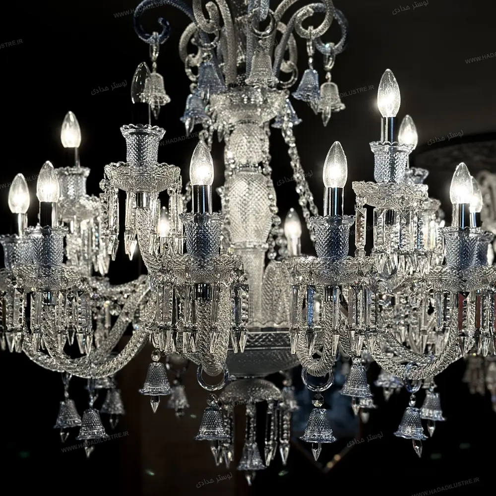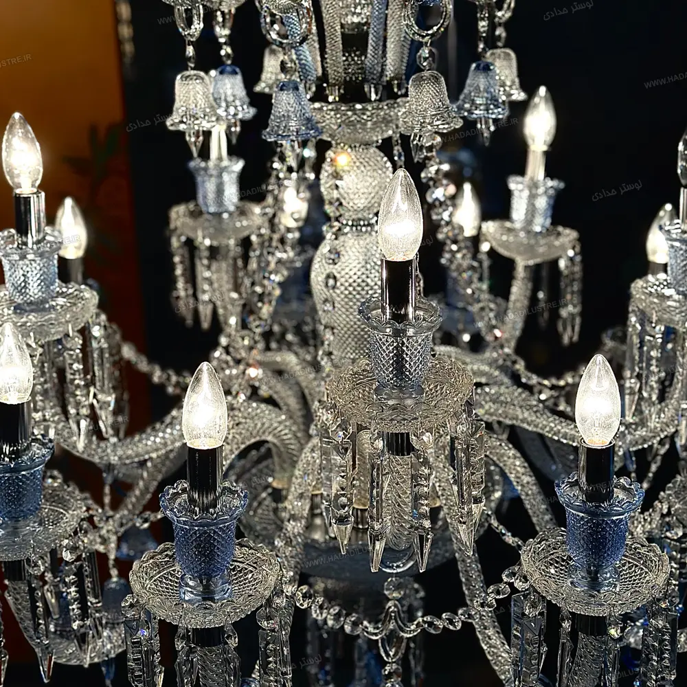 لوستر باکارا سایز 15 شاخه با طراحی منحصر به فرد و ظرافت بینظیر، انتخابی ایدهآل برای افزایش زیبایی و نورپردازی فضاهای بزرگ است.