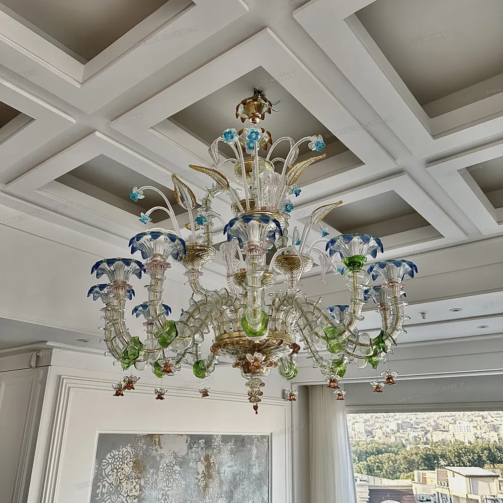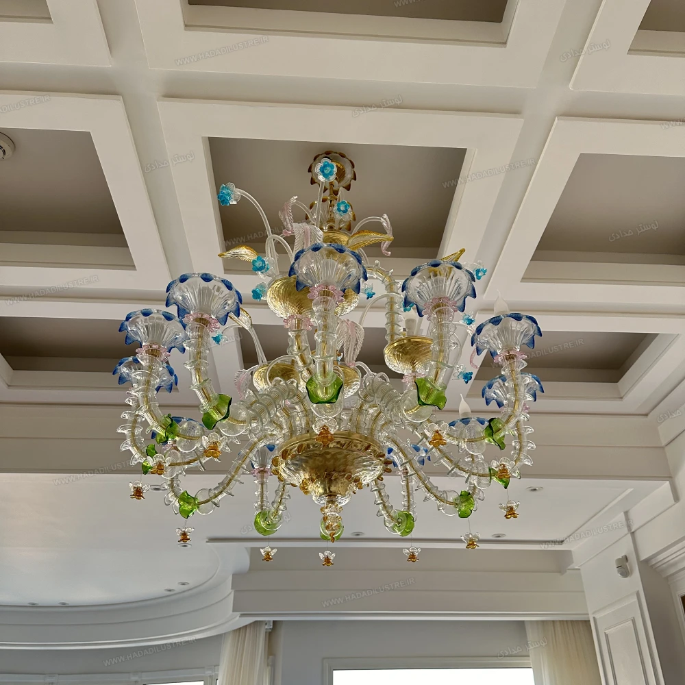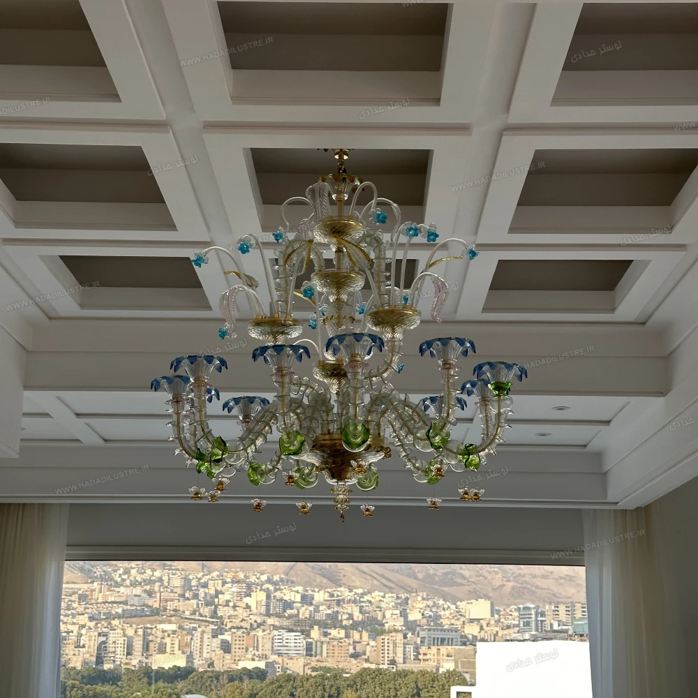 لوستر مدل مورانو 12 شاخه 3 بازو پنج رنگ