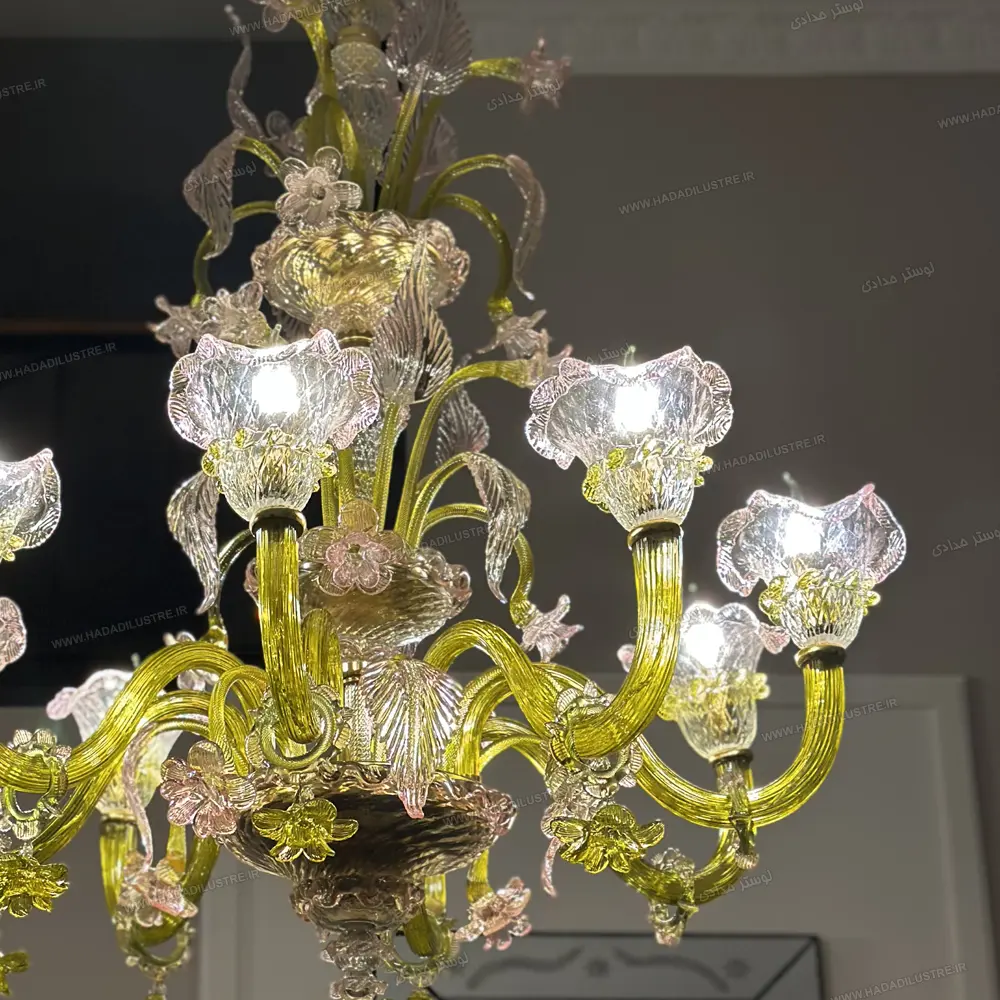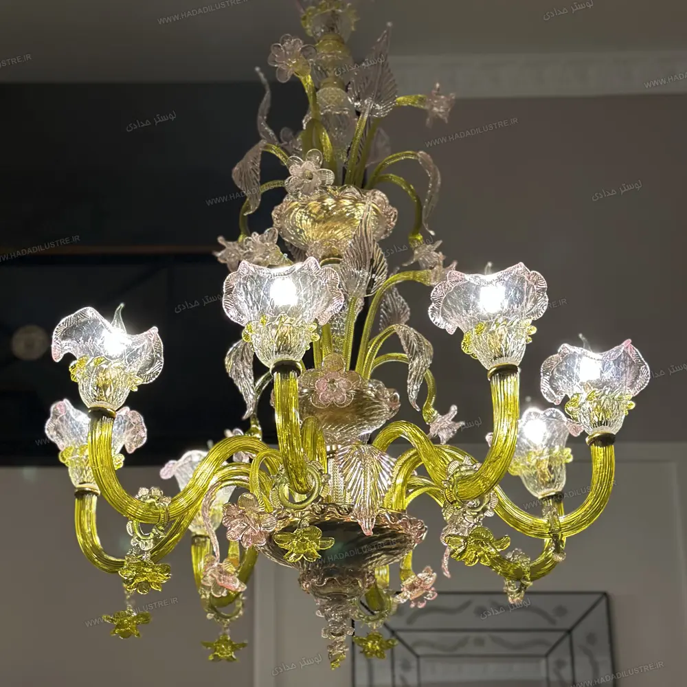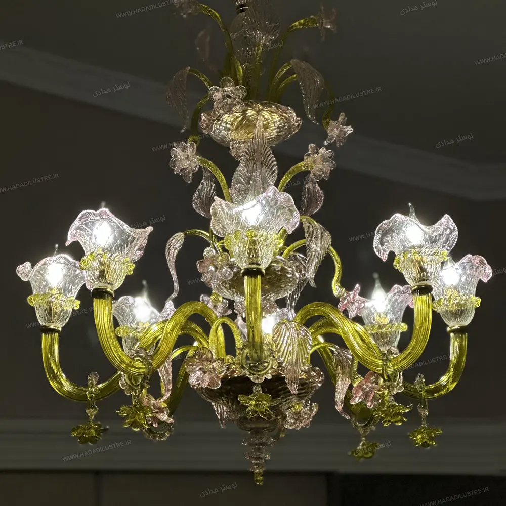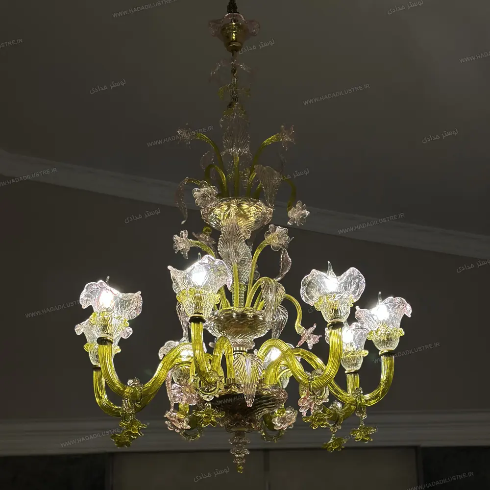 لوستر مدل مورانو سایز 8 شاخه دو ستونه